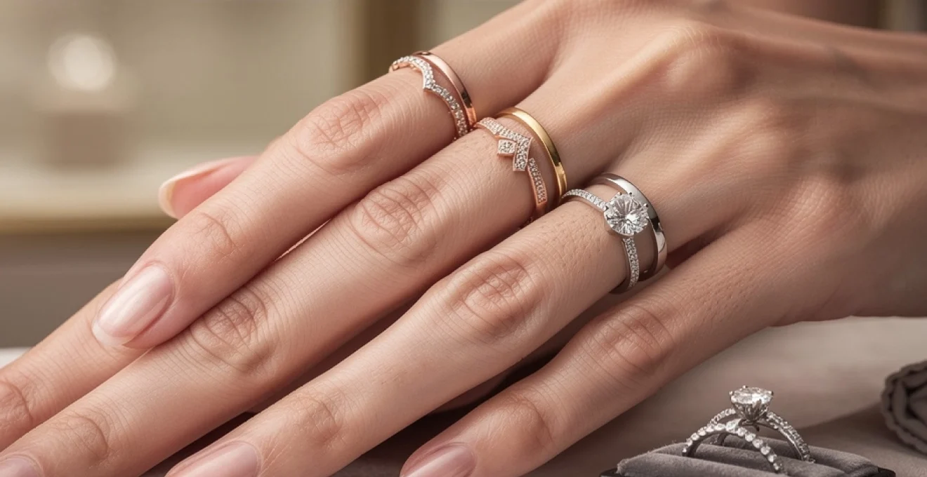 Using multiple V-formation rings in a stack allows you to build dynamic zigzag patterns that feel distinctly modern. Alternating the direction of each chevron can produce a layered, three-dimensional effect, especially when you mix plain metals with pavé-set designs. One advanced technique is to combine a central gemstone ring with two chevron bands—one above and one below—to create a customised crown or tiara-like silhouette. This approach works particularly well for those looking to transform a classic solitaire into a more contemporary stacked ring arrangement without replacing the original piece.
